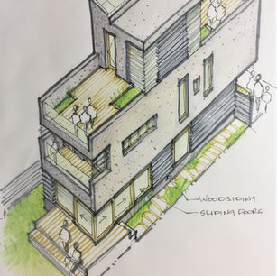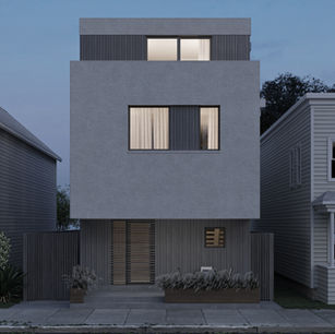 The design of this townhouse maximizes space by extending the facade toward the sidewalk. The street level is bounded by a weathered wood fence and is recessed back—the second-floor cantilevers towards the street, allowing for covered entry into the house.....read more